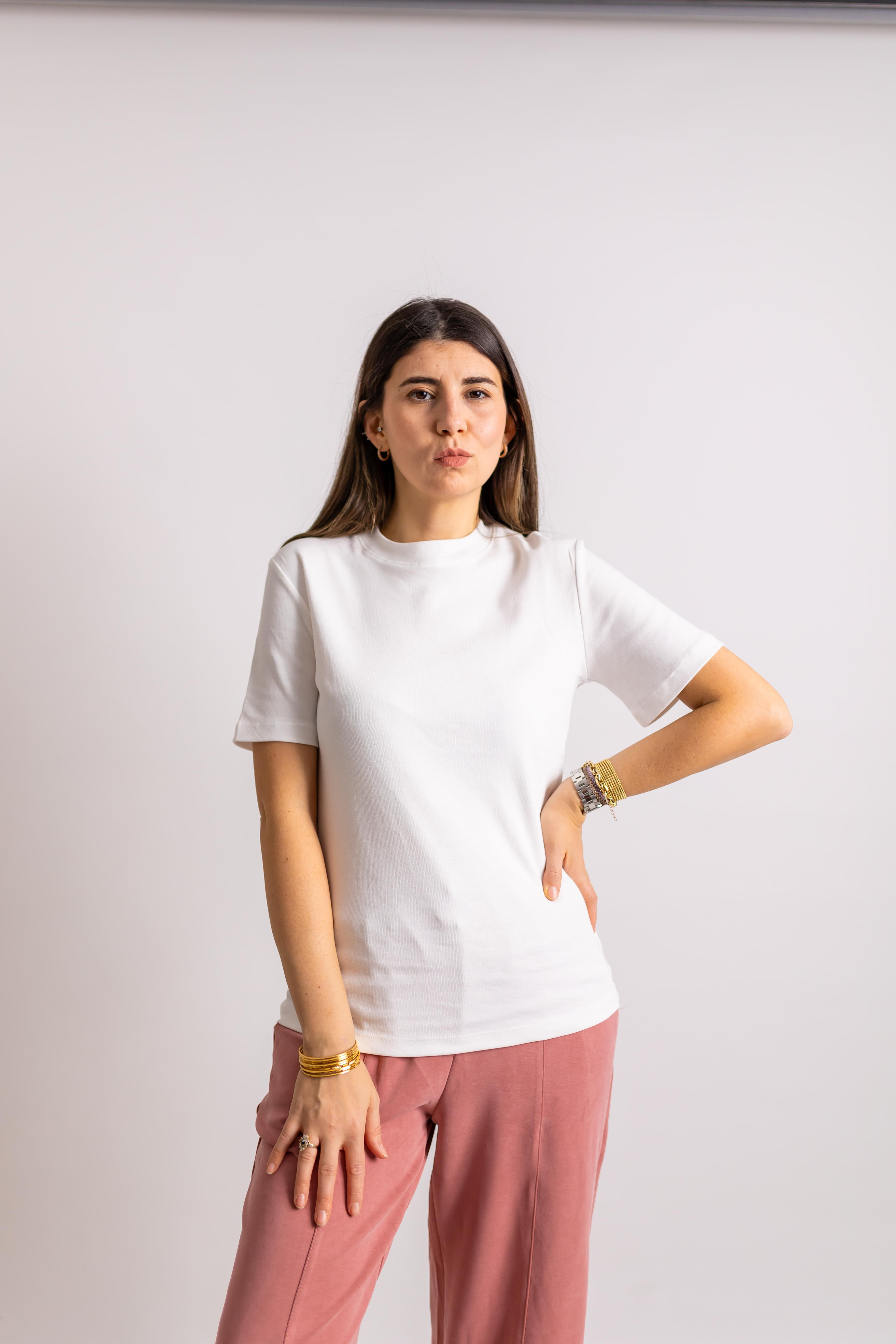 BEYAZ BİSİKLET YAKA PAMUKLU TSHIRT
