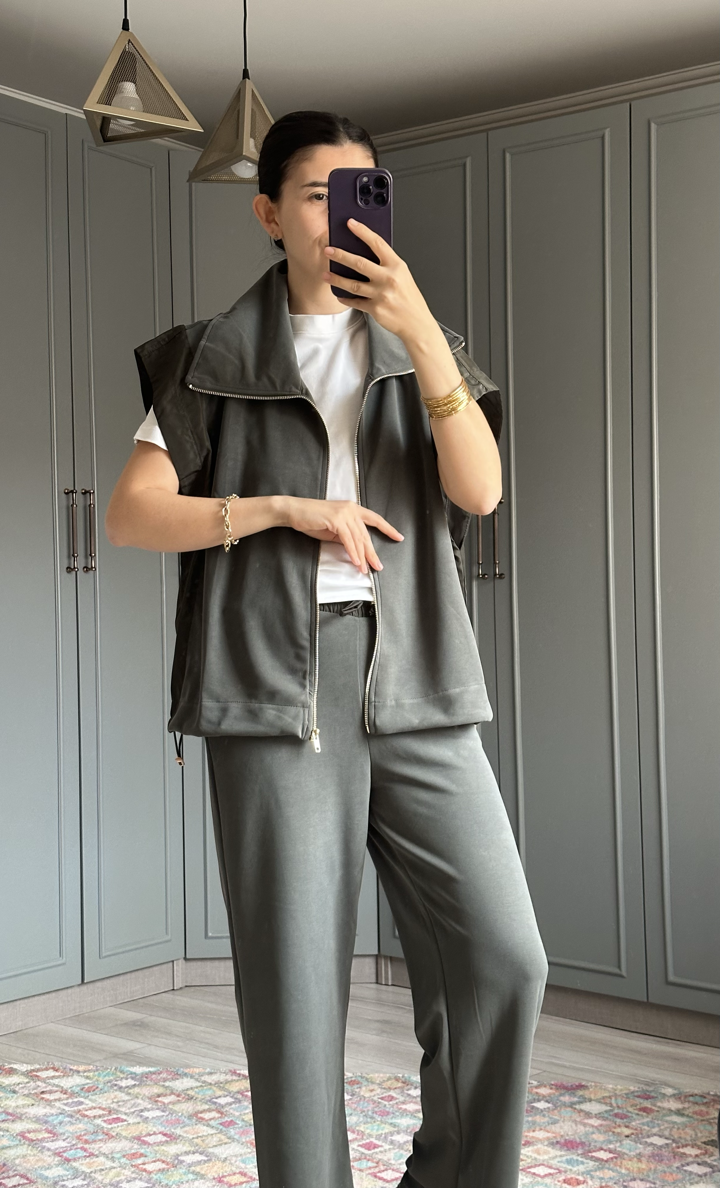 HAKİ PARAŞÜT DETAY YELEK PANTOLON MODAL TAKIM