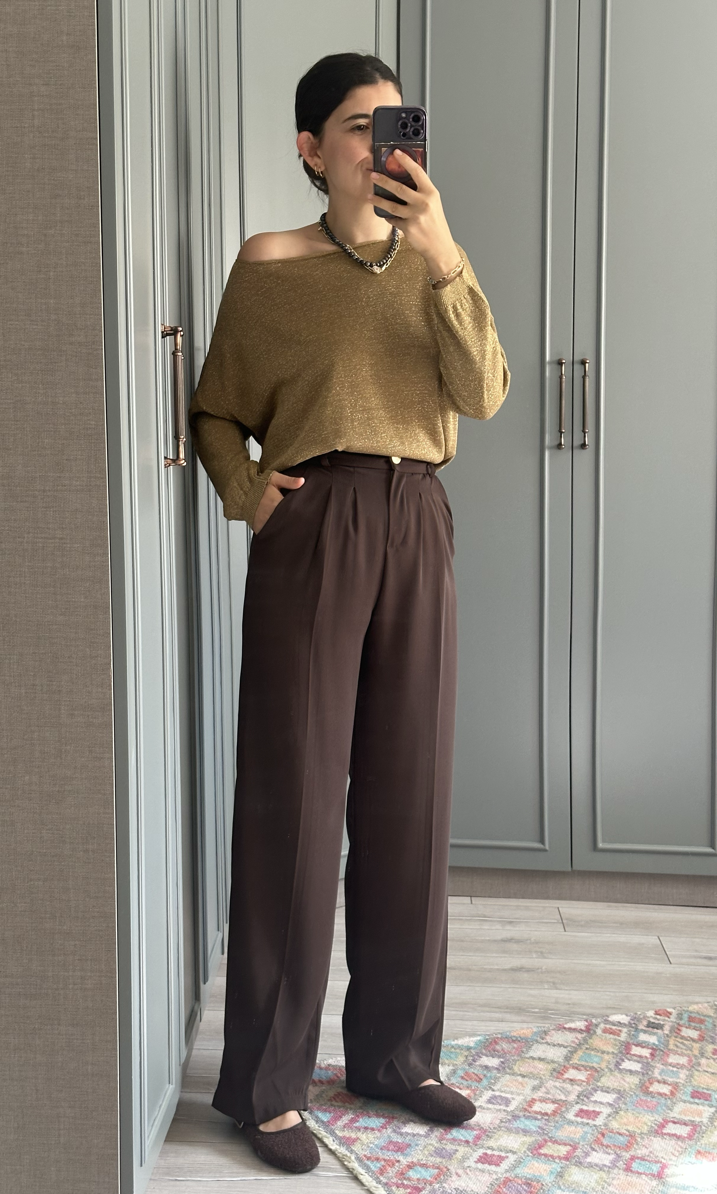 KAHVE GOLD DÜĞME DETAY PALAZZO PANTOLON